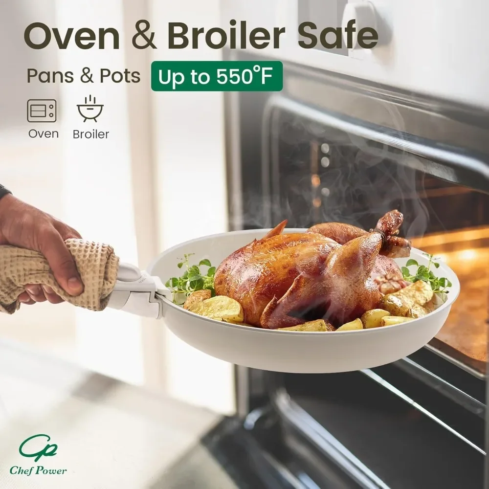 Ceramic Cookware Set Non Toxic with Detachable Handles, Healthy Nonstick Pans and Pots Set 19 Pcs,PFOA & PTFE Free,Cream White